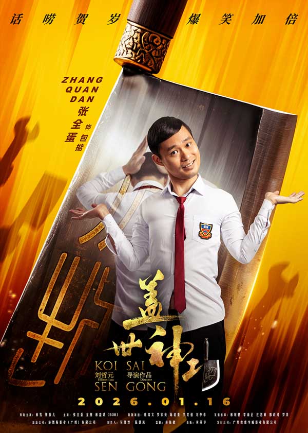 由施博斯影业(广州)有限公司出品,刘哲元导演编剧,吴佳煜、陈慧凯担任制片人,林敏骢监制,林雪,钟骏儿,张全蛋,金刚,林盛斌(BOB),詹瑞文,罗家英,陈启泰,李昊祖等主演的无厘头电影《盖世神功》,即将于1月16日全国上映。影片近日全国路演火热进行中,路演现场爆梗不断,主创与观众零距离互动,提前引爆“笑到甩肺”的欢乐风暴。同时释出的一组“刀光癫影”人物海报更是创意十足,将无厘头风格进行到底。这部集结香港喜剧黄金阵容、诚意致敬经典的爆笑之作,已蓄势待发,准备在开年为全国观众送上第一份欢乐大礼。